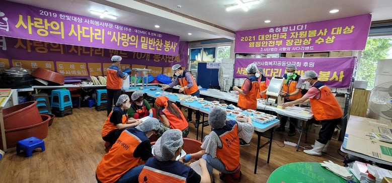 [대전 세계타임즈=이채봉 기자] 6년째 꾸준히 대전시 소외계층을 위해서 다양한 봉사를 펼치고 있는 대전시 봉사단체 사랑의 사다리 밴드(리더 이정제)는 2일 대덕구 소외계층 70가정에 사랑의 밑반찬 3종류를 전달하면서 우리 사회의 따뜻한 사랑을 실천 하였다.