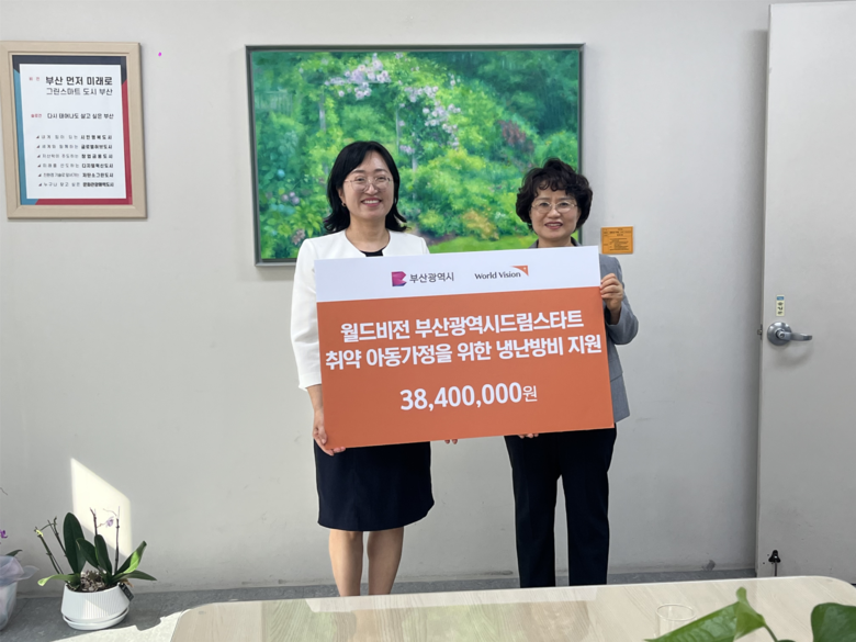 이날 월드비전 부산사업본부는 지원금 3천840만 원을 전달했다. 지원금은 시 드림스타트 아동 총 128가구(냉방비 80, 난방비 48)의 냉난방비로 쓰일 예정이다.