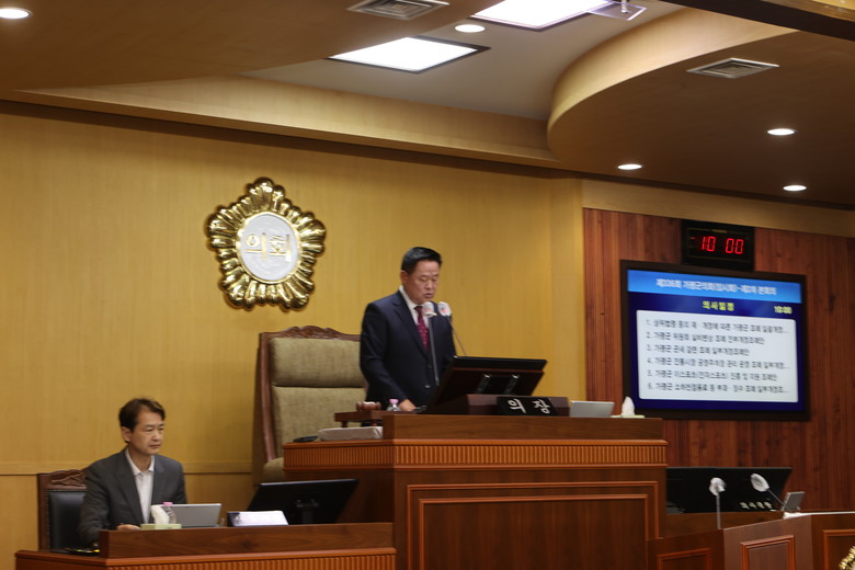 한편, 본회의 안건 상정에 앞서 최정용 의원은 5분 자유발언을 통해, 가평군 축산업의 지속 가능한 미래와 고질적인 축산분뇨 및 환경 문제 해결을 위한 필수 과제인 ‘가평군 친환경 가축분뇨 공공처리시설’의 건립을 강력히 촉구하였다.