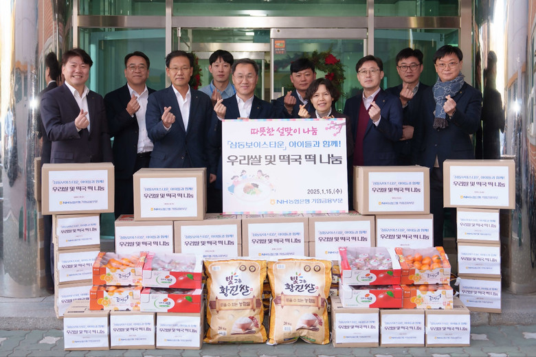 [세계타임즈 = 이송원 기자] NH농협은행은 설 명절을 맞아 지난 15일 기업금융부문 엄을용 부행장과 임직원들이 서울시 마포구 소재 삼동보이스타운을 찾아 「함께 나누는 따뜻한 설맞이 나눔활동」를 실시했다고 16일 밝혔다.