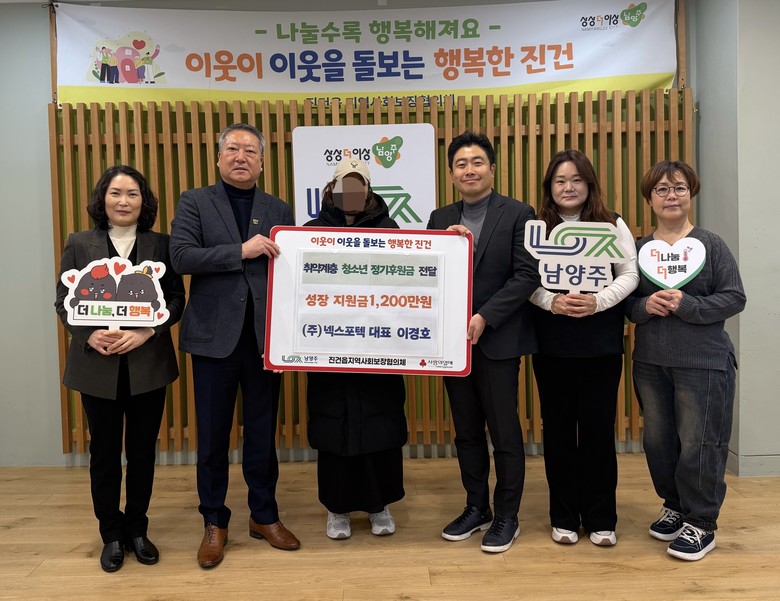 [남양주시 세계타임즈=송민수 기자] 남양주시는 지난 4일 진건퇴계원행정복지센터(센터장 문흥기)에서 ㈜넥스포텍(대표 이경호)이 지역 내 취약계층 청소년을 위한 성장 후원금 전달식을 진행했다고 5일 밝혔다.