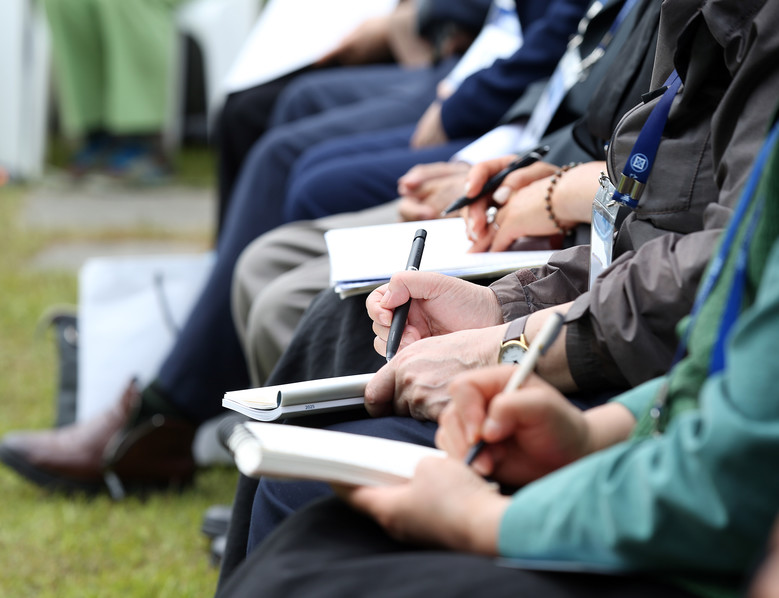 | ▲ 17일 경기도 청평 신천지 평화연수원에서 ‘계시성취 실상증거 신천지 말씀대성회’가 열린 가운데 참석한 목회자들이 이만희 총회장의 강연을 필기하고 있다. [사진제공 = 신천지예수교회] |