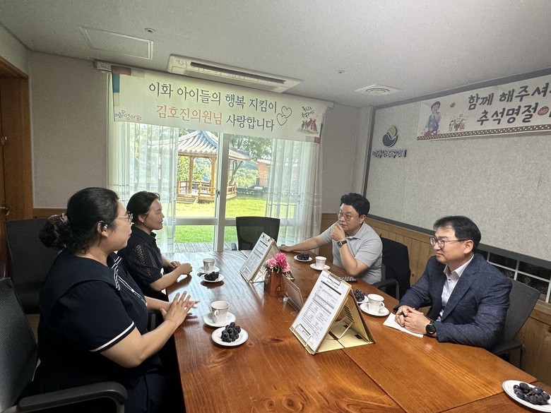 김호진 의원은 아이들의 생활 공간을 직접 살피고, 시설 관계자들과 이야기를 나누며 애로사항을 청취했다. 특히 “올여름 무더운 날씨에 아이들이 건강하게 잘 지냈는지 걱정된다”며 아이들의 안부를 물으며 따뜻한 마음을 전했다.
