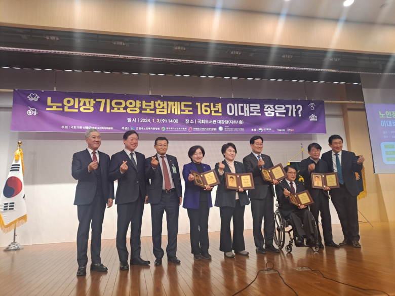 이번 수여식은 신동근 국회 보건복지위원장이 주최하고 사)한국노인복지중앙회, 한국재가노인복지협회, 사)한국노인장기요양기관협회, 사)한국재가장기요양기관협회 법정 4단체가 공동 주관한 노인장기요양보험제도 16년 토론회에 앞서 진행됐다.
