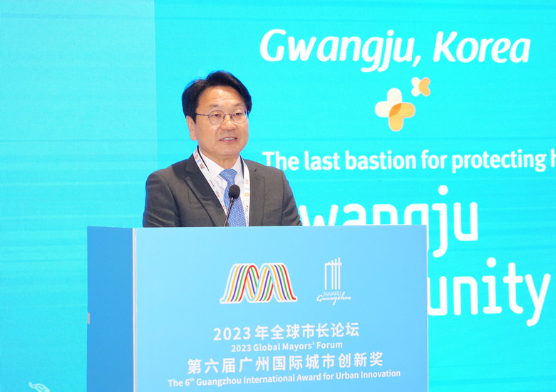 강기정 시장은 9일 중국 광저우 월수국제컨벤션센터에서 열린 ‘제3회 세계시장포럼’에 참석해 ‘광주다움 통합돌봄’ 정책을 주제로 기조연설에 나서 광주만의 돌봄정책 도입 배경과 5·18민주화운동에 뿌리를 둔 민주도시 광주의 포용성을 알렸다.