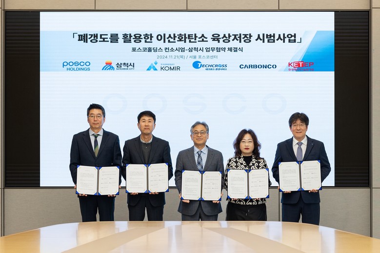 카본코와 포스코홀딩스, 수처리 전문 기업 테크로스환경서비스, 한국광해광업공단 등으로 이뤄진 컨소시엄은 지난 21일 삼척시와 ‘폐갱도를 활용한 이산화탄소 육상 저장’ 시범 사업을 위한 업무협약(MOU)을 맺었다고 22일 밝혔다. 국비 총 67억6000만원이 투입되는 이 사업은 올해부터 2027년까지 진행된다. 컨소시엄은 지난 7월 시범 사업 기관으로 선정됐다. 폐갱도를 이산화탄소를 가둘 저장소로 활용하기 위한 기술 개발과 실증에 나선다.