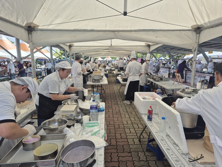 이날 대회에선 치열한 예선을 거쳐 본선에 진출한 일반·학생부 25팀이 즉석에서 고구마와 감자 등 지역 특산물을 활용해 각각의 개성과 창의성을 살린 새로운 떡 요리를 선보였다.