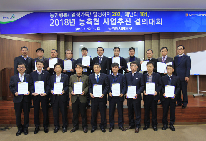 [세계타임즈 이채봉 기자]NH농협생명(대표이사 서기봉)이 1월 12일(금)과 13일(토) 양일간 농협생명 수안보수련원에서 「2018년 사업추진 결의대회」를 열고 올해 사업목표 달성을 다짐했다.