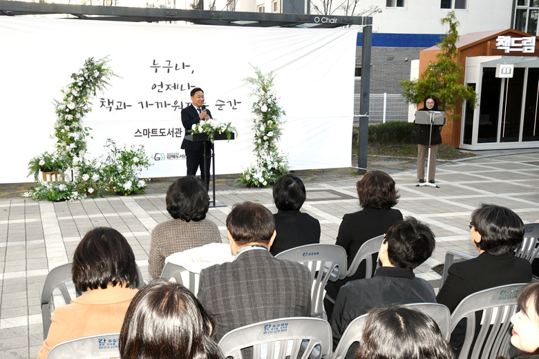 [경남 세계타임즈=최성룡 기자] 경남도의회 교육위원회 손덕상 도의원(더불어민주당, 김해 8)은 28일 오후 2시 김해 장유 모산공원 내에 설치된 김해 무인 스마트도서관 “책드림”의 개관식에 참석, “이번 도서관의 개관을 계기로 장유에 새로운 독서문화가 확산되길 기대한다”며, “장유 주민들의 많은 이용을 부탁 드린다”고 말했다.