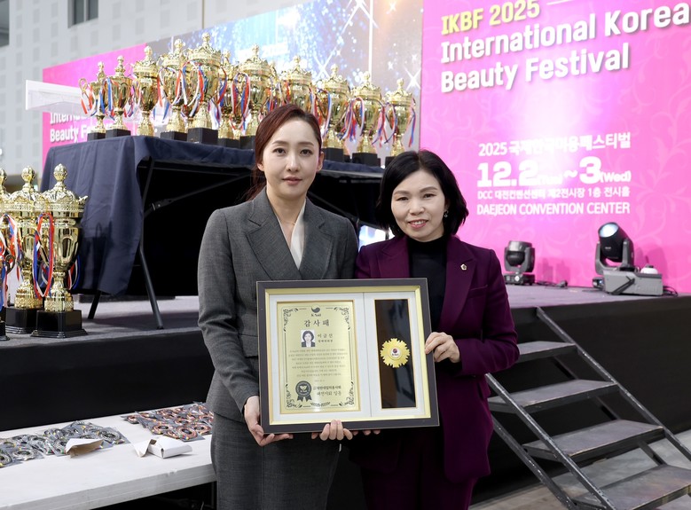 [대전 세계타임즈=이채봉 기자] 대전광역시의회 이금선 의원(교육위원장, 국민의힘, 유성구4)은 3일 사단법인 대한미용사회중앙회에서 주최한 ‘2025 국제한국미용페스티벌’ K-NAIL CONTEST에서 (사)대한네일미용사회 대전지회로부터 감사패를 수상하였다.