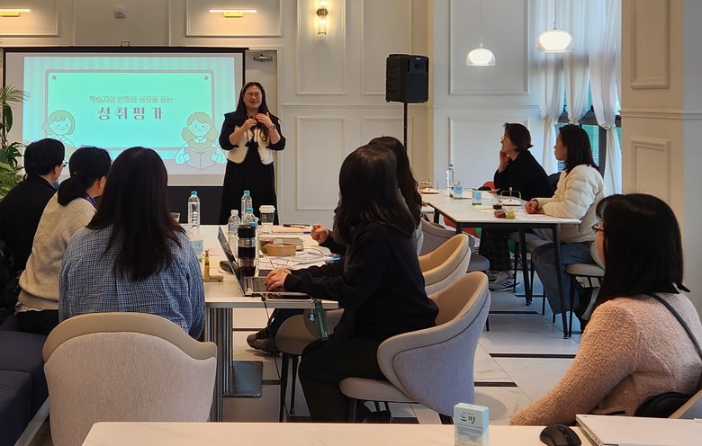 첫 회 연수는 ‘학습자 주도성을 키우는 성취평가 수업‧평가 디자인’을 주제로 진행됐으며 참여 교원들은 학교생활기록부 기반 교수학습계획–수업–평가–기록의 일체화 과정을 이해하고, 성취 기준 분석 실습과 학습자 주도 수업·평가 사례를 공유했다.