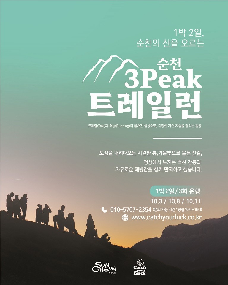 ‘순천 쓰리픽스 트레일런’은 봉화산·용산·조계산을 연이어 오르는 도전형 산행 프로그램이다. 도전·치유·절경이라는 주제로 참가자들은 내면의 휴식을 되찾고 자연의 아름다움을 만끽하는 특별한 시간을 갖게 된다.