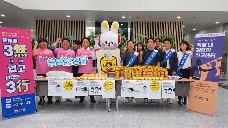 - 3무·3행 실천 메시지와 이색 홍보물로 공감대 확산 [세계타임즈=경남 최성룡 기자] 경상남도(도지사 박완수)는 19일 오전, 경상남도 서부청사에서 ‘멘토 청렴파수꾼 청담회’를 개최하고, 이어 도청공무원노동조합과 공동 주관한 ‘청렴문화 확산 캠페인’을 성황리에 마무리했다.