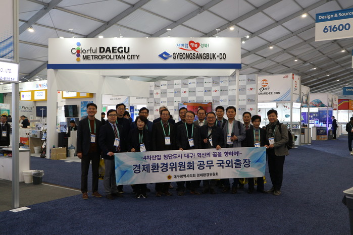 대구광역시의회 경제환경위원회(위원장 하병문)는 지난 8일(수) 출국하여 ‘CES 2020 전시회’를 상임위 차원에서 처음 방문하였다. 특히, 역대 최대 규모(47개사)로 조성된‘대구‧경북 공동관’에 전시된 지역의 유망 중소‧벤처기업 제품뿐만 아니라 삼성, LG, 인텔, 애플 등 글로벌 선도기업들의 전시관도 함께 둘러보았으며‘대구‧경북 참가기업인 간담회’에도 참석하여 기업체 관계자들을 격려하였다.