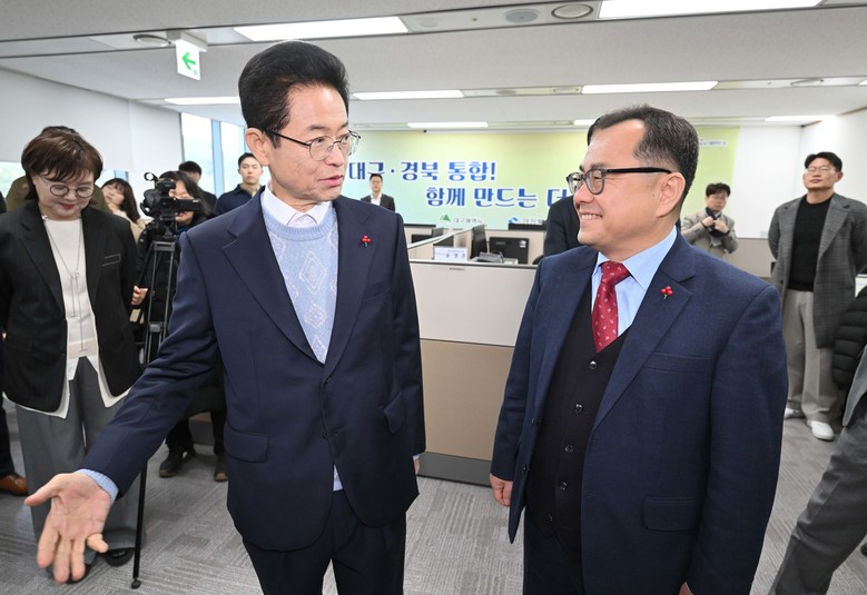 ▸ 특별법 대응부터 균형발전까지 중단없는 통합 실행력 확보 [세계타임즈=대구 한윤석 기자] 대구광역시와 경상북도는 1월 26일(월) 경북도청에서 홍성주 대구시 경제부시장과 이철우 경북도지사가 참석한 가운데 ‘대구·경북통합추진단(T/F)’ 현판식을 개최하고, 성공적인 행정 통합을 위한 본격적인 실무 행보에 돌입했다.