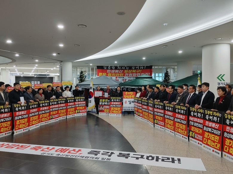 기자회견에는 지역 농민들도 참석했다. 방성환 의원은 “이 추운 날 농민들이 도의회를 찾을 수밖에 없었던 이유는 김동연 지사의 이른바 ‘이증도감(李增道減) 예산’ 때문”이라며 “정치적 성과를 위한 예산은 늘리고, 농업·복지 등 민생 분야는 대폭 삭감한 정치 편향 예산 구조가 농가를 벼랑 끝으로 내몰고 있다”고 주장했다.