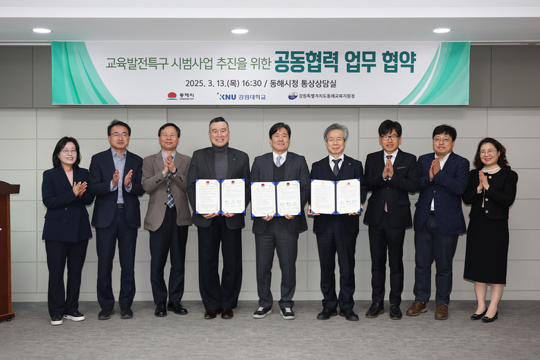 사업 추진의 실효성을 높이고 기관 간 협력을 강화하기 위해, 시는 지난 3월 13일 동해시청 통상상담실에서 동해시, 동해교육지원청, 강원대 삼척캠퍼스 등 기관 관계자들이 참석한 가운데 업무 협약을 체결했다.
