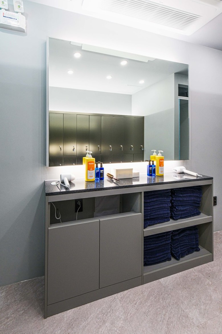 ‘핏 스테이션’ 내 샤워실은 남·녀 구분되어 각각 5개의 샤워부스를 갖추고 있으며, 탈의 공간과 함께 수건, 드라이기 등 기본 편의물품이 구비되어 있다.