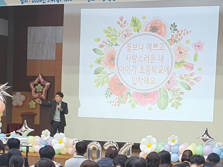 이번 입학식에는 ‘초등학교 입학을 위한 우리 아이 생활·인성 지도 워밍업’이라는 주제로 신입생 학부모 연수를 진행하여 신입생 학부모가 학교를 신뢰하고 학교와 소통할 수 있는 시간이 되었다.