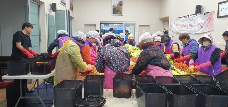 25일에는 자원봉사자 5명이 덕적공립요양원을 직접 방문하여 어르신들을 위해 김장김치 100포기를 정성껏 담가 전달했으며, 26~27일에는 자원봉사자, 면 직원, 이장협의회, 의용소방대, 자율방범대, 예비군면대, 덕적발전소, 옹진농협 덕적지점 등 관내 유관기관을 포함한 70여명이 함께 참여해 560포기를 담가 1인당 13L의 김치통에 담아 총 111명의 취약계층에게 전달했다.