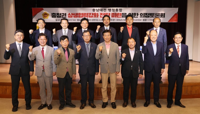 토론회에는 신영호 의원이 좌장을, 정재근 대전·충남 행정통합 민관협의체 공동위원장이 발제를 맡았으며 충남도의회 김민수 의원(비례‧더불어민주당)‧대전시의회 이재경 의원‧충남대학교 강병수 명예교수·중부대학교 권오철 초빙교수가 토론자로 나섰다.