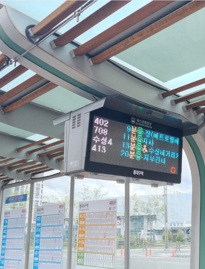 ▸ 버스정보안내기 등 신규 설치로 시내버스 이용 편의 향상 [세계타임즈=대구 한윤석 기자] 대구광역시는 버스운행관리시스템의 고도화와 버스정보안내기 확대 설치를 통해 시민들에게 더 정확하고 편리한 대중교통 정보를 제공하고, 교통 이용 편의를 대폭 향상시킨다.