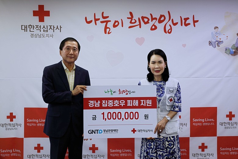 경남관광재단은 전 직원이 성금을 모아 5일에 대한적십자사 경남지사를 통해 산청군으로 지원금을 전달하였다.