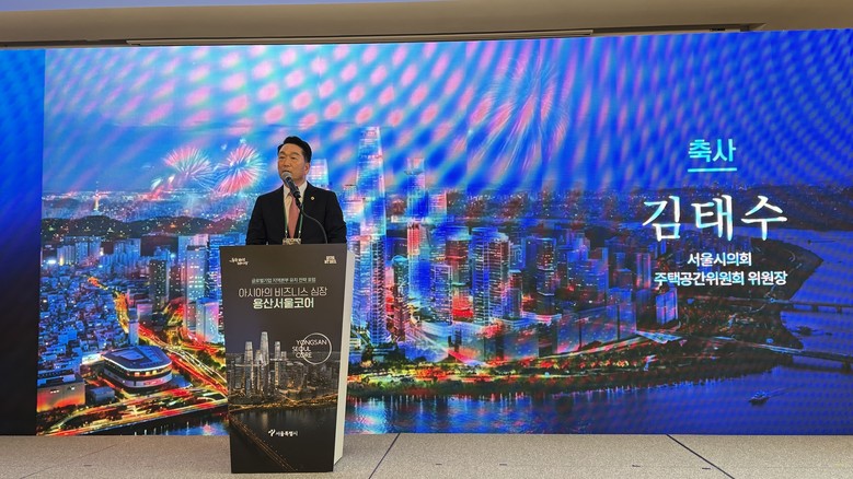 [서울 세계타임즈=이장성 기자] 서울특별시의회 주택공간위원회 김태수 위원장(국민의힘, 성북구 제4선거구)은 3월 27일(금) 오후 2시, 전쟁기념관 피스앤파크(아주르홀, 4층)에서 개최된 「아시아의 비즈니스 심장, 용산서울코어 : 글로벌 기업 지역본부 유치 전략 포럼」에 참석하여 축사를 통해 용산 국제업무지구의 전략적 가치를 강조하고 서울특별시의회의 적극 지원 의지를 밝혔다.