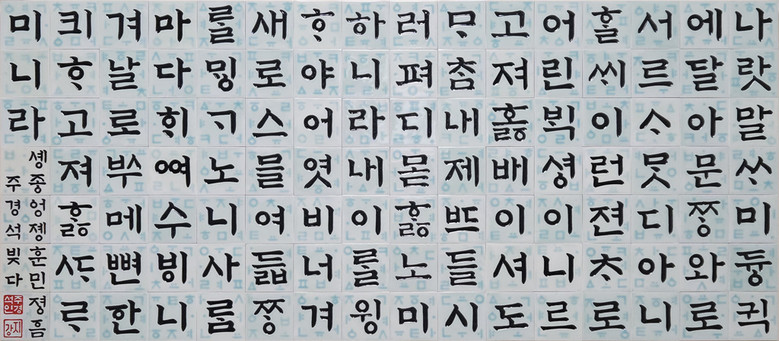 [세계타임즈=김광수 기자] 주경석 작가는 도자회화로 제작된 훈민정음을 퍼즐 조각 맞추듯 균형 있게 연결하여 눈으로 보여 지는 한글의 조형미를 더욱 강조시킨 작품으로 2022년 10월 5일(수) ~ 10월 10일(월)까지 서울 인사동 소재의 아리수갤러리에서 "도자로 빚은 한글" 타이틀로 전시를 진행 한다. 훈민정음 어제 서문과 한글 자모로 구성된 다수의 ‘도자훈민정음’ 신작이 공개되는 전시로 글자 하나씩을 음각과 양각 기법을 활용하여 타일 형태로 빚은 문자 조각을 조합해 완성하여 작품에서 발산되는 품격이 대단하다.