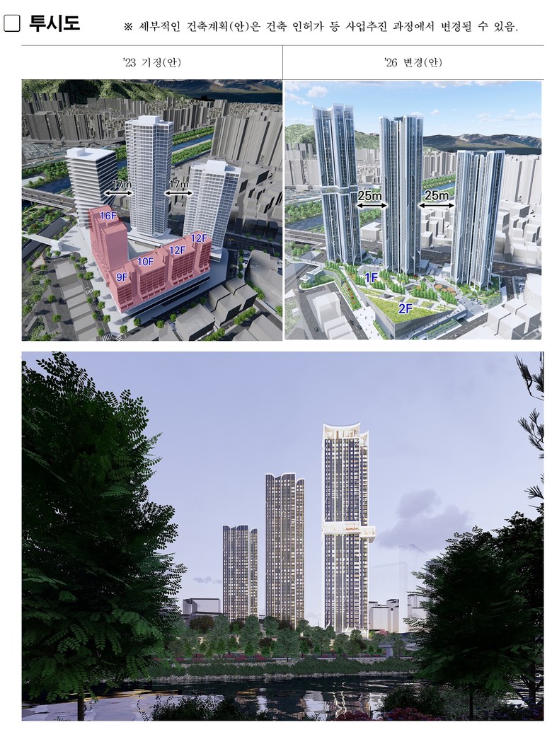 기존 평균 개발밀도는 용적률 565%에서 금번 용적률 433%로 개발규모를 대폭 하향하였다.