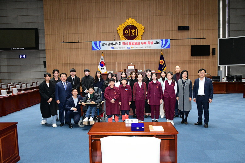 [광주 세계타임즈=손권일 기자] 광주광역시의회(의장 정무창)는 12월 9일(금), 시의회 본회의장에서 ‘2022년도 학생 모의의회 우수 학생 시상식’을 개최했다고 밝혔다.