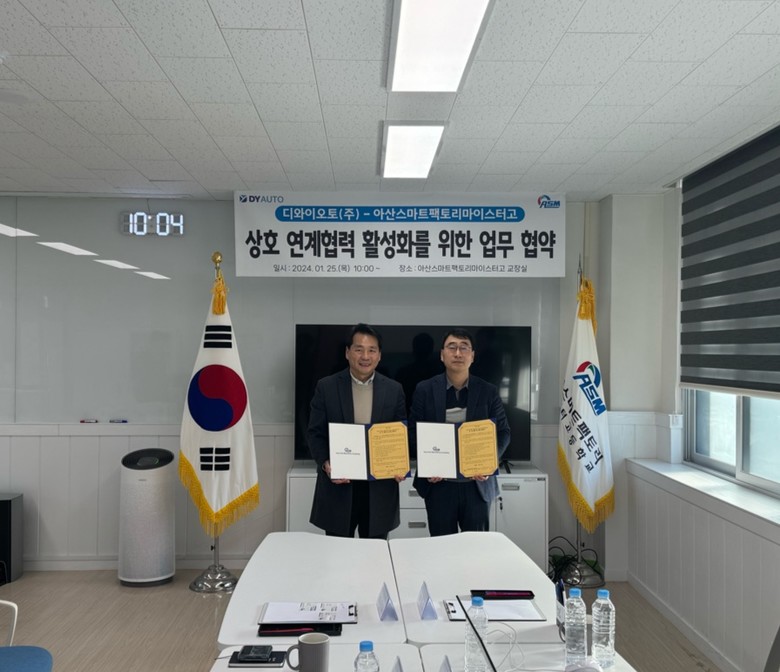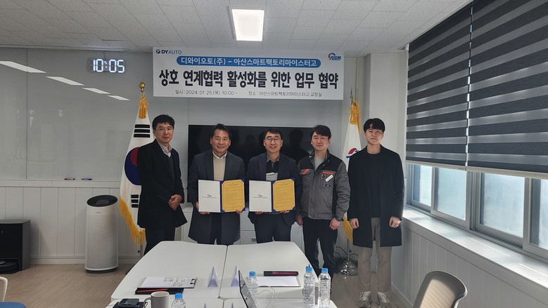 [아산시 세계타임즈=백택기 기자] 아산스마트팩토리마이스터고(교장 조동헌)는 지난 1월 25일 디와이오토㈜와 상호 연계협력 활성화를 위한 업무협약을 체결했다.