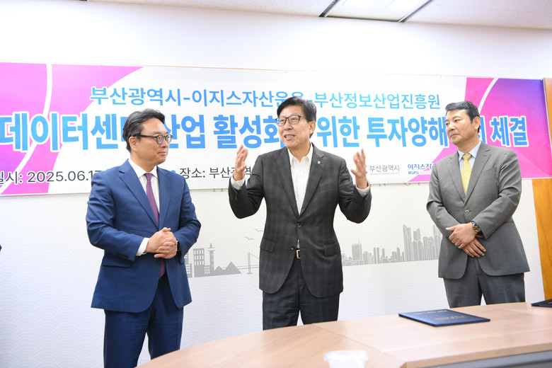 ◈ 지역인재 우선 고용, 지역건설산업자 참여 확대 등으로 지역 경제 활성화에도 상호 협력 약속 [세계타임즈=부산 이용우 기자] 부산시(시장 박형준)는 오늘(17일) 오전 10시 시청 국제의전실에서 이지스자산운용㈜(리얼에셋부문 대표 이철승)과 1조 8천억 원 규모의 '인공지능(AI) 데이터센터 산업 활성화 투자양해각서'를 체결한다고 밝혔다.