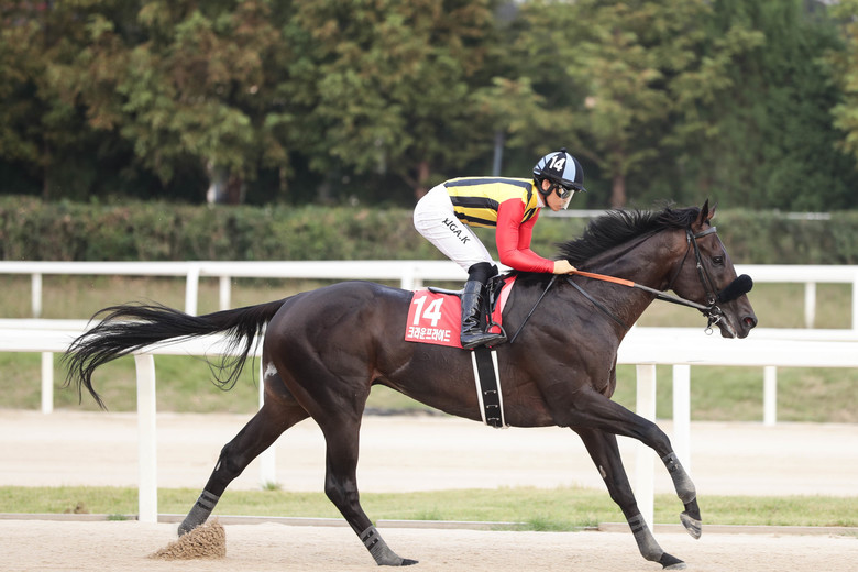 해외경주에 관심이 있는 경마팬이라면 이미 익숙한 이름 ‘윌슨테소로’. 첫 해외 원정경주였던 2024 두바이 월드컵(G1)에서 4위를 차지한 실력파다. 전년도 디펜딩 챔피언이자 해당경주에서 2위를 차지한 ‘우슈바테소로’에는 못 미칠지 몰라도 파워풀한 추입과 페이스 장악력만큼은 누구에게도 밀리지 않는 일본 최강급 더트마다. ‘23년 도쿄대상전 및 챔피언스컵, ‘24년 제왕상 모두 2위를 기록. 라이벌이 ’레몬팝‘, ’우슈바테소로‘ 등 가히 더트의 신이라 불릴만한 말이었던 점을 감안하면 무관 탈출은 시간문제로 보인다. 부마는 그 이름도 유명한 ’키타산 블랙‘. 일본 버블경제 시대를 풍미했던 ’오구리캡‘의 영광을 재현하며 전국민적 인기와 함께 한화 약 200억원의 상금을 획득했던 명마다. 마주는 ’리에노테소로‘, ’오로라테소로‘ 등 ‘테소로’ 군단을 보유한 료토쿠지 켄지, 조교사는 코테가와 히토시.