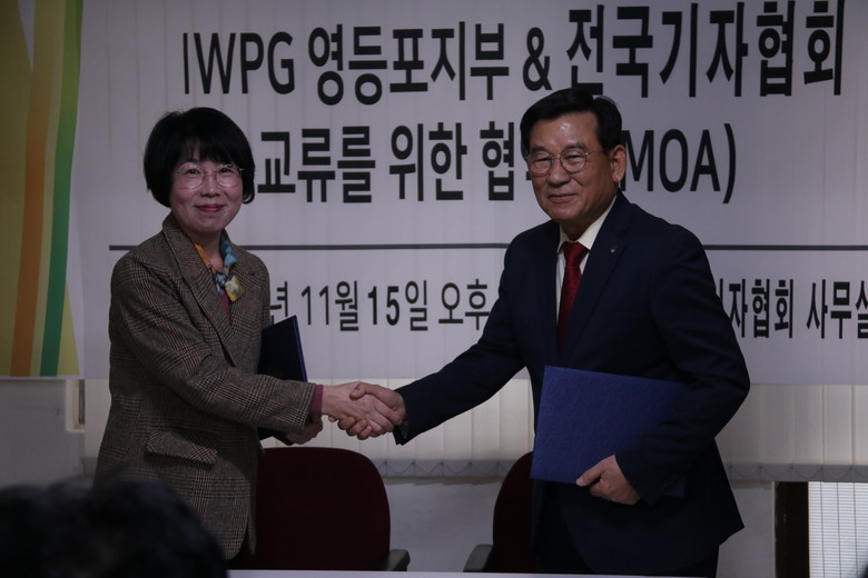 [세계타임즈 백진욱 기자] 어제 15일 (사)세계여성평화그룹 영등포지부(IWPG, 지부장 최강순)가 ‘전국기자협회’(협회장 민병홍)와 전국기자협회 사무실에서 평화사업을 실현하고 홍보하기 위한 실질적 협력관계 구축을 위해 MOU를 체결했다.