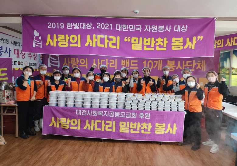 사랑의 사다리 봉사단체는 현재 일만명 회원으로 구성되 있으며 회원들의 따뜻한 후원금으로 대전시 5개구 소외계층을 위해서 매월 15회~20회 다양한 봉사를 꾸준히 하고 있으며 작년에는 총 225회 봉사로 12,000명에게 따뜻한 사랑을 실천 하였다.
