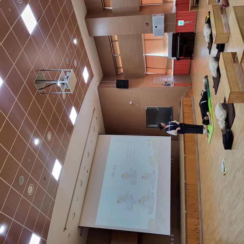 원활한 안전교육을 실습하기 위해 넓은 3층 강당에서 교육이 이루어졌다. 먼저 안전에 대한 이론 교육으로 시작한 후, 심폐소생술을 직접 체험할 수 있도록 애니모형과 교육용 자동심장충격기를 활용한 교육이 이어졌다.
