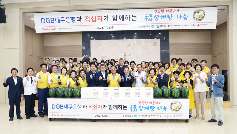 DGB대구은행 임직원 및 DGB대구은행 대학생 홍보대사 20여명과 대한적십자사 봉사자 30여명과 함께 군위군수(김진열) 및 군위군의회(의장 박수현), 대구시의회(의장 이만규)에서도 봉사활동에 같이 참여하여 군위군 어르신 약 500여명에게 삼계탕을 대접했다.