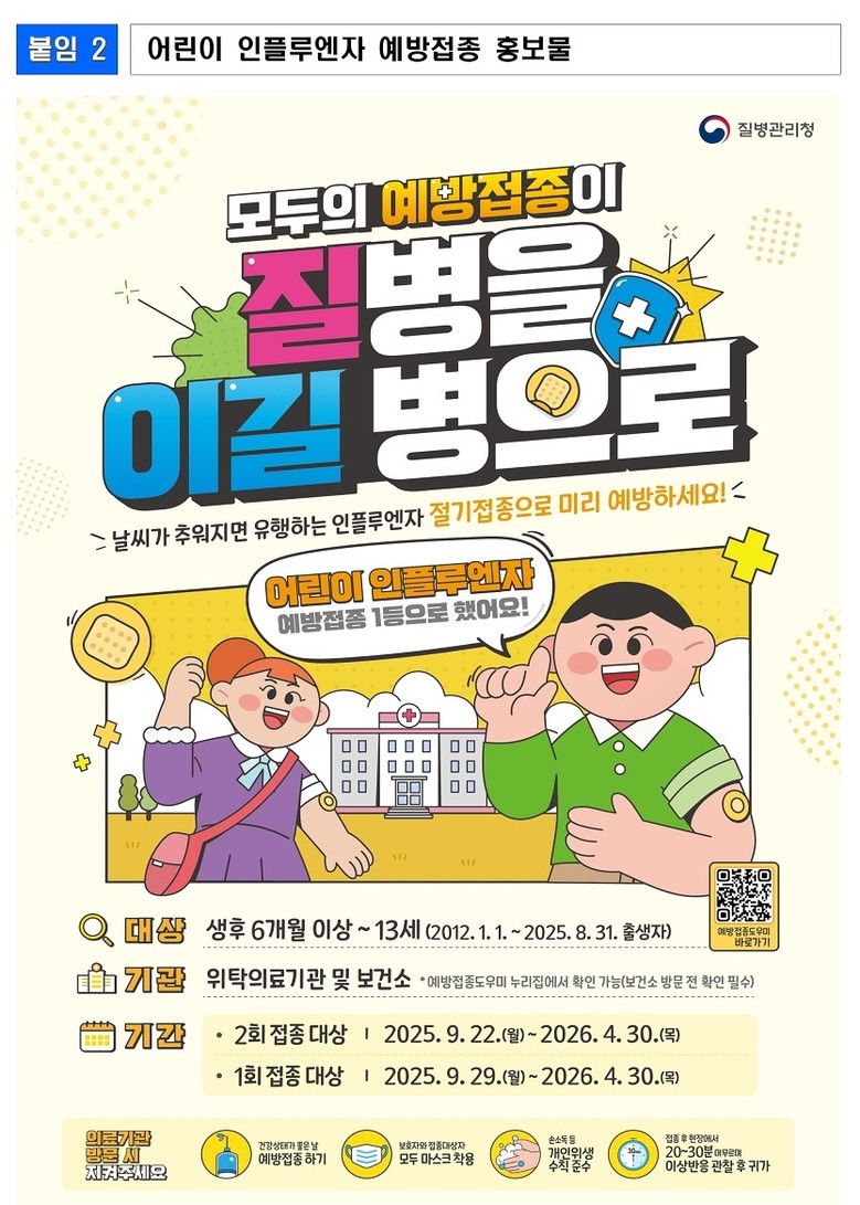 강원특별자치도는 어린이(생후 6개월~13세), 임신부, 65세 이상 어르신을 대상으로 4월 30일까지 ‘2025-2026절기 인플루엔자 국가예방접종’을 실시하고 있다.