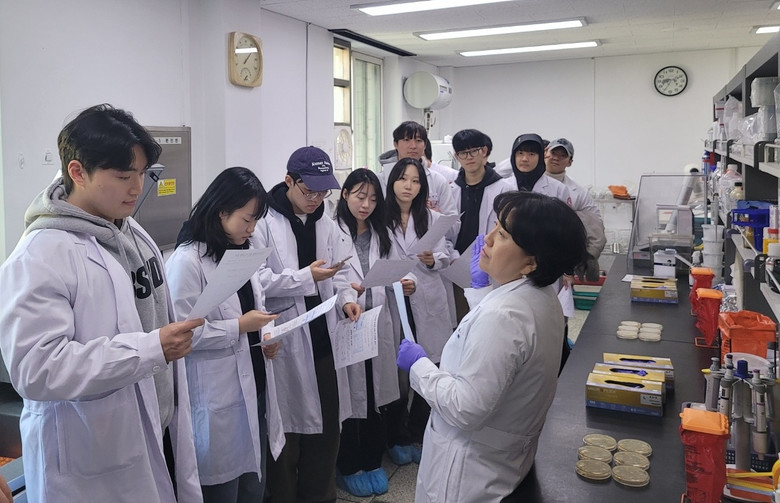 이번 실습에는 대구보건환경연구원 소속 수의공무원들이 직접 강사로 나서 동물 방역, 축산물 위생·안전성검사에 대한 이론과 실습 교육을 진행했다.
