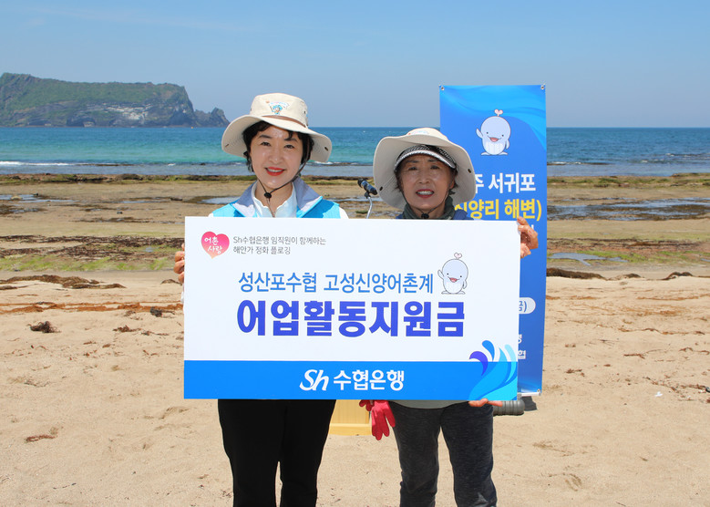 한편, 강신숙 은행장은 플로깅에 앞서 강복순 고성신양어촌계장에게 어업활동지원금을 전달했다.