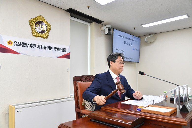 [경남 세계타임즈=최성룡 기자] 경남도의회는 3월 21일 ‘유보통합 추진 지원을 위한 특별위원회(이하 특위)‘ 제1차 회의를 열어 위원장에 노치환 의원(국민의힘, 비례), 부위원장에 정수만 의원(국민의힘, 거제 1)을 선출했다.