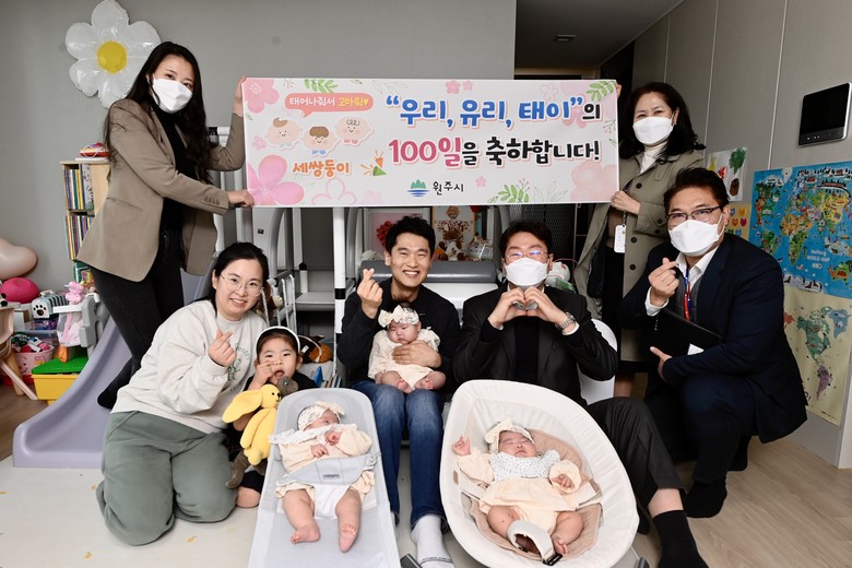 원강수 원주시장은 “세쌍둥이의 백일을 진심으로 축하드리며, 앞으로도 원주시에서 출산 가정의 경제적 부담을 덜어주고 아이들이 건강하게 자랄 수 있는 환경을 만들기 위해 최선을 다하겠다.”라며, “아이 키우기 좋은 도시를 위한 다양한 정책을 발굴·추진해 나가겠다.”라고 말했다.