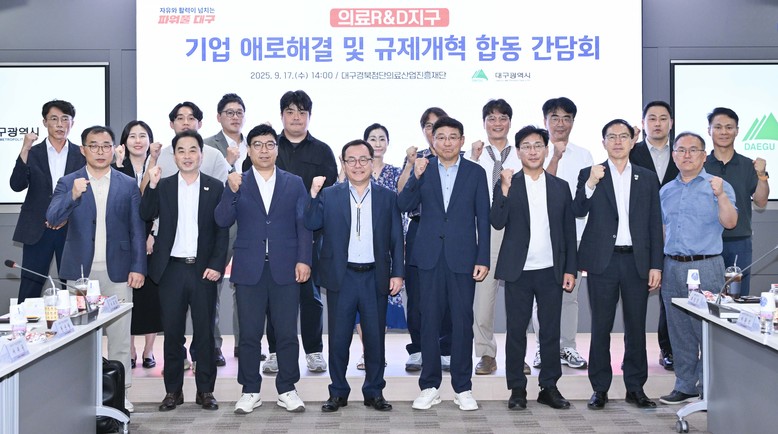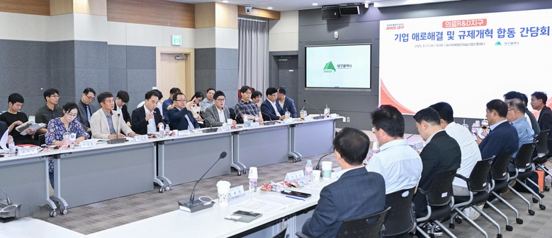 ▸ 인프라·규제 개선 등 기업 경영현장 중심의 실질적 해법 모색 [세계타임즈=대구 한윤석 기자] 대구광역시는 9월 17일(수) 오후 2시, 대구경북첨단의료산업진흥재단에서 홍성주 대구시 경제부시장 주재로 의료R&D지구 내 기업과 유관기관이 함께하는 ‘제3차 기업 애로해결 및 규제개혁 합동간담회’를 개최했다.
