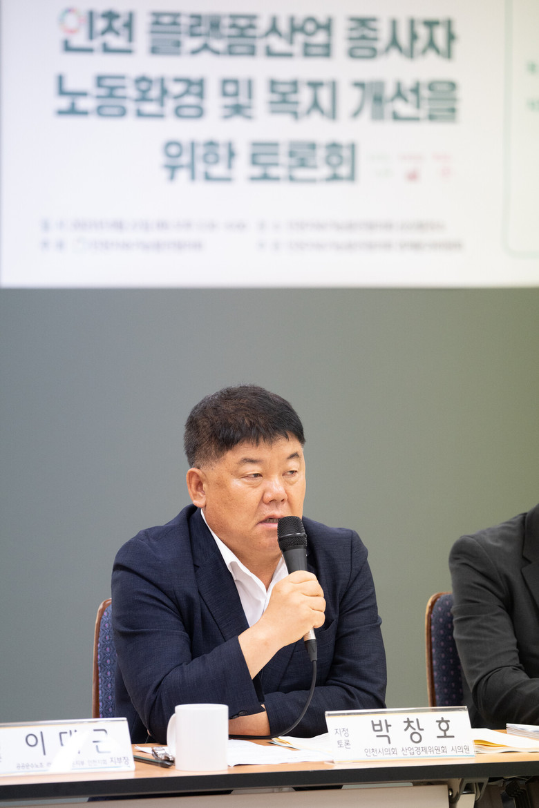 이어 이대근 민주노총 공공운수노조 라이더유니온지부 인천지회 지부장, 정부영 민주노총 서비스연맹 전국택배노조 인부천지부 사무국장, 서용성 인천광역시청 노동정책과 과장, 박창호 의원 등이 각각 토론자로 나섰다.