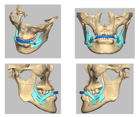 A씨는 얼굴의 좌우길이가 다르고 씹을 때 얼굴이 틀어질 만큼 턱관절 모양이 비대칭으로 컴퓨터시뮬레이션 가상수술을 통해 위턱뼈를 바르게 위치시키고, 아래턱을 위턱의 치아에 맞춘 후 좌우 하악관절부의 과두를 재위치 시켜 비대칭을 개선하는 수술 계획을 세웠다.
