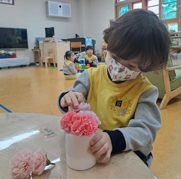 가족사랑주간 세 번째 행사는 각 학급에서 진행된 어버이날 행사로 비누 꽃 카네이션 화분 만들기, 카네이션 타르트 요리하기, 대왕 카네이션 만들기 등을 진행하였다. 작고 소중한 들의 손으로 정성이 담긴 카네이션을 만들며 어버이날의 의미를 알고, 어버이의 은혜에 감사함을 느끼고 감사의 마음을 가지는 시간을 가졌다.