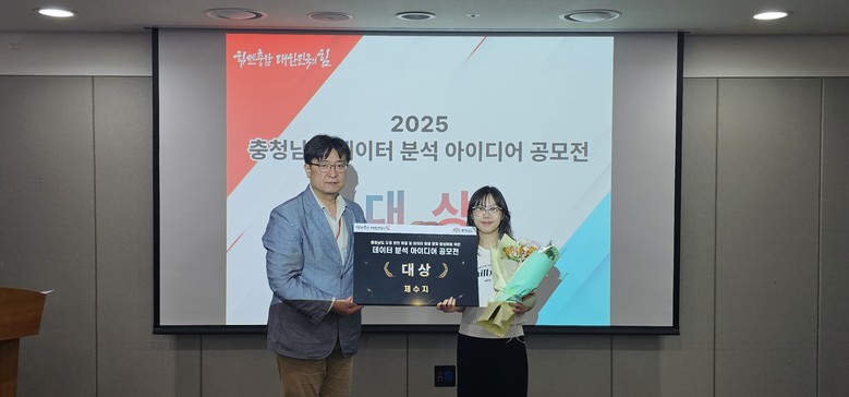 우수상은 △박재윤 씨의 ‘충남형 기후재난 취약계층(독거노인) 맞춤형 안전망 구축을 위한 데이터 분석’ △천호영 씨의 ‘실시간 IPTV 시청 데이터 분석을 통한 사회적 취약계층 고립예방’ △복상균 씨의 ‘충남형 폐가·빈집 DB 분석 기반 주거·농지 회복 플랫폼’ △정영주 씨의 ‘데이터 기반 충남형 수해·침수 위험 예측 및 스마트 경보 시스템’ △임정현 씨의 ‘농촌 고령화 대응 스마트 복지 예측지수 기반 돌봄 사각지대 조기감지 시스템’이다.