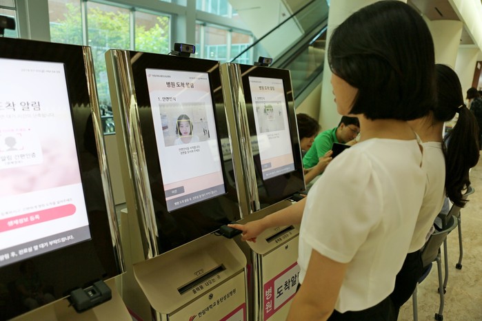 얼굴과 지문을 이용한 생체인식은 외래환자들의 병원 도착확인 시 적용된다. 사전에 생체인식을 등록한 예약환자가 병원에 도착하여 무인종합정보안내시스템인 키오스크 화면에 인증하면 자동으로 외래접수가 이뤄진다. 0.3초만에 본인확인이 이뤄져 병원 이용시간을 최대 10분까지 절약할 수 있다.