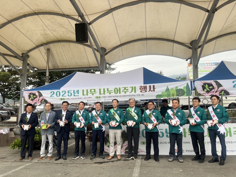 - 오는 26일, 산청군 산청읍에서도 추가 개최 예정 [세계타임즈=경남 최성룡 기자] 경상남도(도지사 박완수)는 24일 산청군 시천면 덕산약초시장에서 지난 3월 발생한 산청 산불 피해지를 복원하고 지역주민들에게 새로운 희망을 전하기 위해 ‘2025년 경상남도 나무 나눠주기’ 행사를 개최했다고 밝혔다.